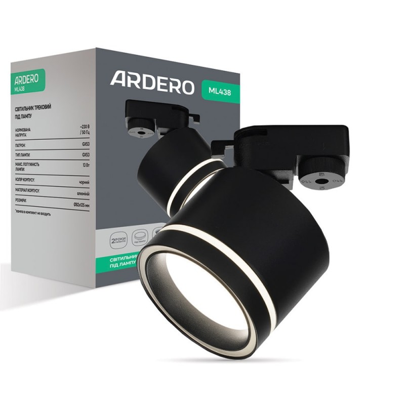 Переваги та особливості трекового світильника Ardero ML438 під лампу чорного кольору: