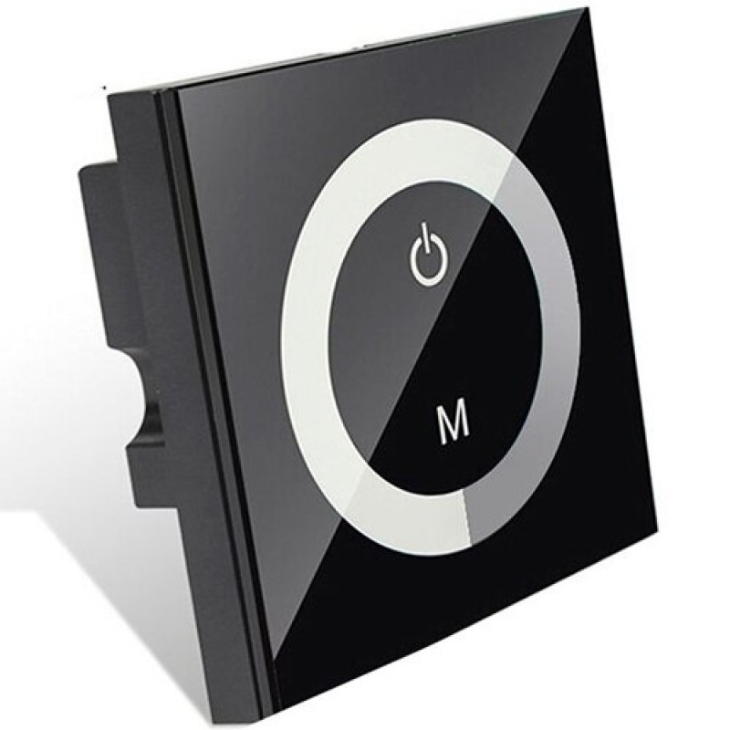 Димер OEM 8A-Touch-B використовується для плавного регулювання яскравості світла монохромних світлодіодних стрічок. Виріб належить до групи вбудовуваних моделей та не потребує пульта дистанційного керування. Передня панель пофарбована у чорний колір, а сенсорне кільце даного виробу біле.