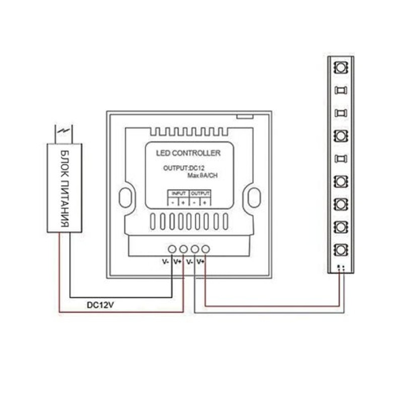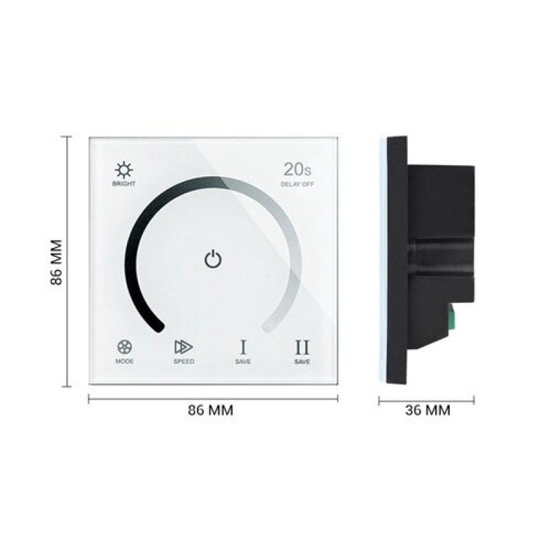 Потужність приладу складає 96 Вт, вихідна сила струму дорівнює 8 А, а робоча напруга – 12 В. Габарити виробу – 86х86х36 мм. Димер розрахований на одну зону управління та оснащений одним вихідним каналом.