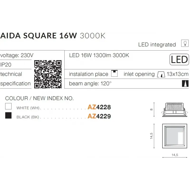 Точковий врізний світильник Azzardo AZ4228 AIDA SQUARE 16W 3000K WH