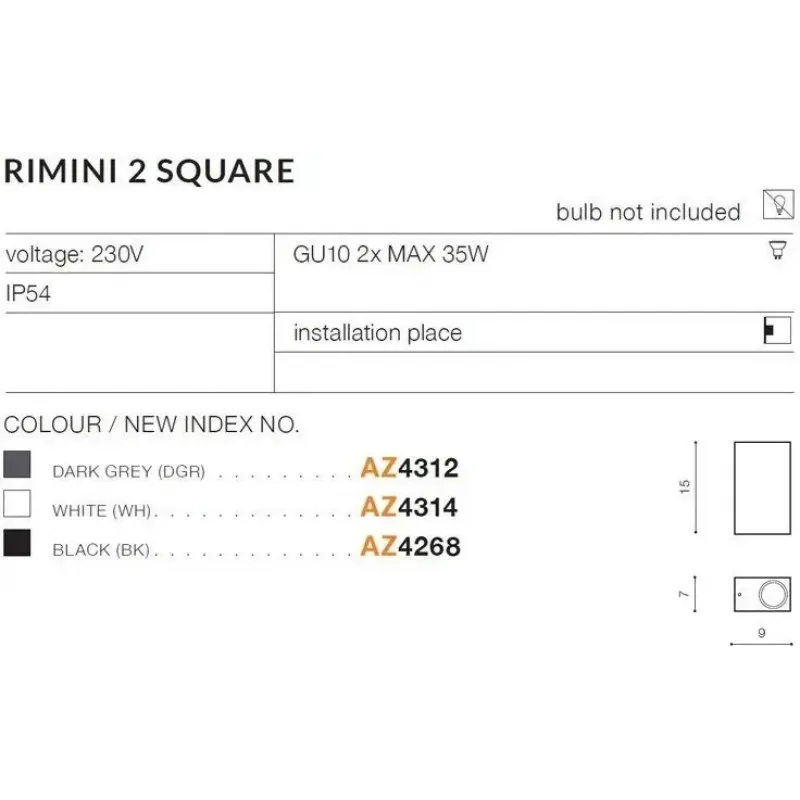 Вуличне підсвічування фасаду Azzardo AZ4268 RIMINI 2 SQUARE BK